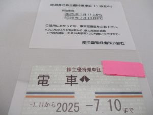 南海電車株主優待乗車証をお買取させて頂きました。