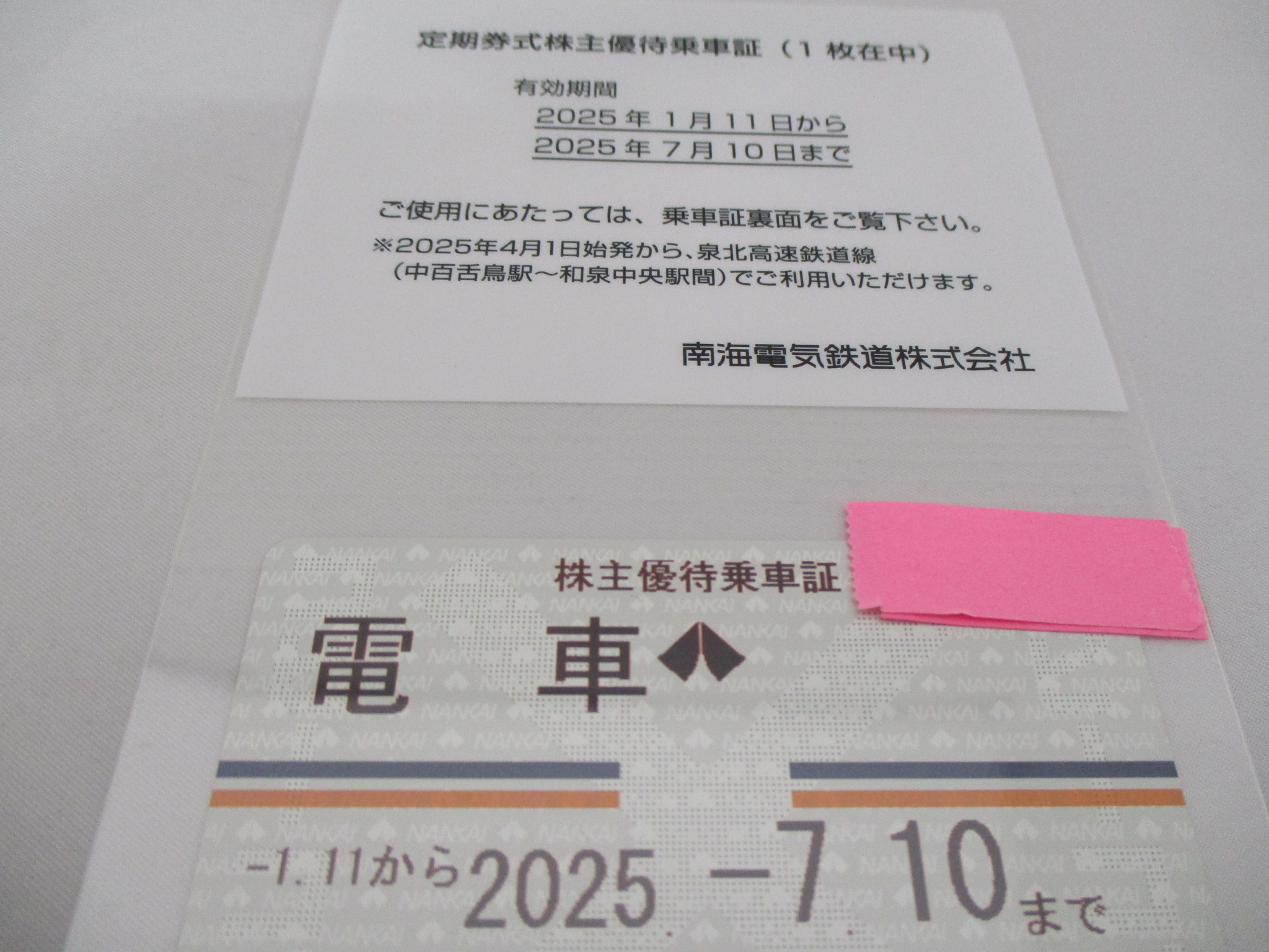 南海電車株主優待乗車証をお買取させて頂きました。株主優待券の買取は大吉いこらもーる泉佐野店までお気軽にお問合せください。 | いこらもーる泉佐野店