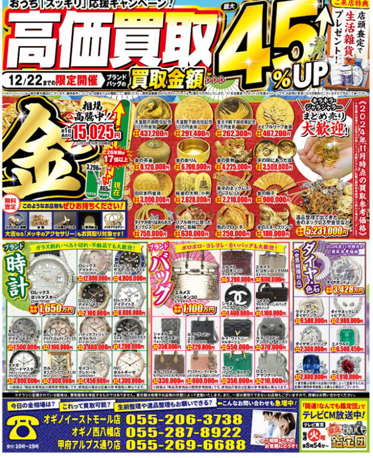 甲府アルプス店では高価買取祭が始まっております。