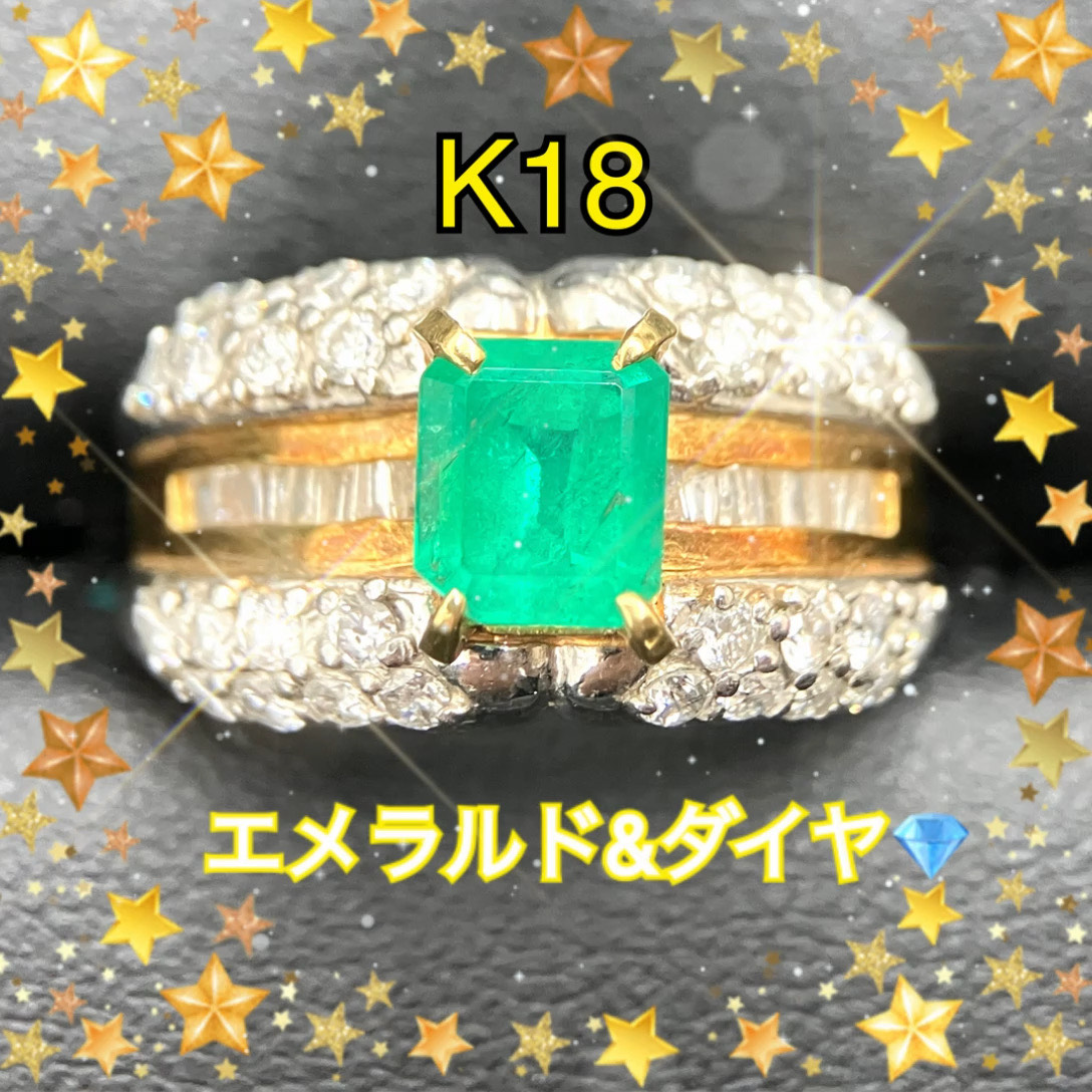 写真:【K18 エメラルド&ダイヤリング】