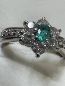 大粒のダイヤモンドやルビー、サファイアなどの貴石がセットされたものは特に価値が上がります。透明度やカットの美しさも評価に影響します。