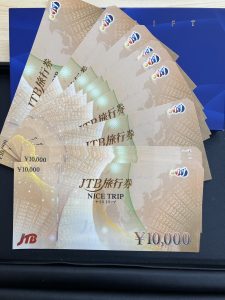 JTB旅行券をお買取りさせていただきました。