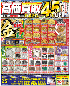 キャンペーン期間中は、なんと金の買取額を最大45%UPさせていただきます!
