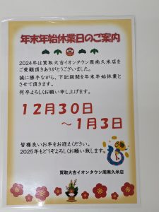 年末年始休業日のご案内 12月30(月)~1月3(金) | イオンタウン周南久米店