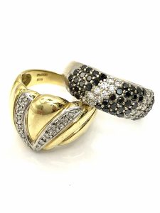 特に右側、2色の石が交互に敷き詰められたリングは非常に煌びやかです💎✨