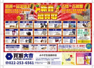 買取大吉 みやぎ生協高砂店 多賀城市高橋2-17-3 みやぎ生協高砂店内 022-253-6561 10:00〜18:00 定休 水曜日