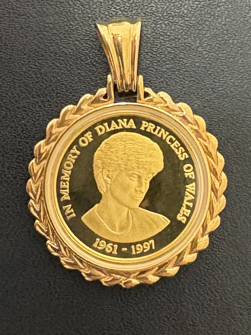 イギリスの故ダイアナ妃の追悼として作られたfournine1/5ozコイン ペンダントトップです。