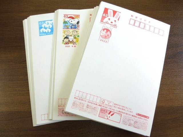 本日は未使用の額面63円のはがきのお買取りのご紹介。