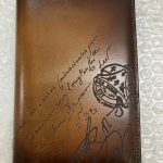 裏面には1カ所だけ革に傷跡がありましたが、購入時のノベリティなど付属品もすべてお揃いでした。