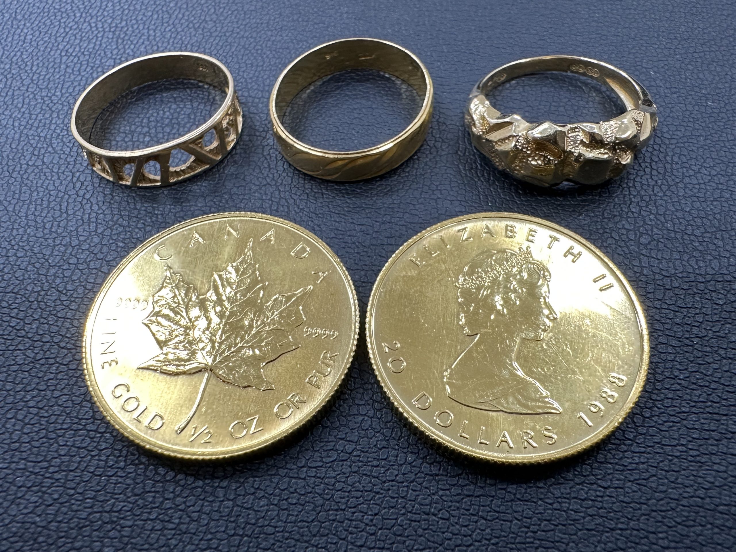 本日は、当店でお買取りさせていただいた「メープル硬貨」「プラチナの指輪」「K18の指輪」をご紹介いたします。