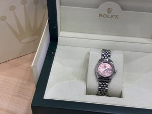 実用的なデザインが中心のロレックスですが、レディースではダイヤモンド装飾やシェル文字盤、ゴールドとステンレスのコンビネーションなど女性らしく華やかなモデルが人気を集めています。
