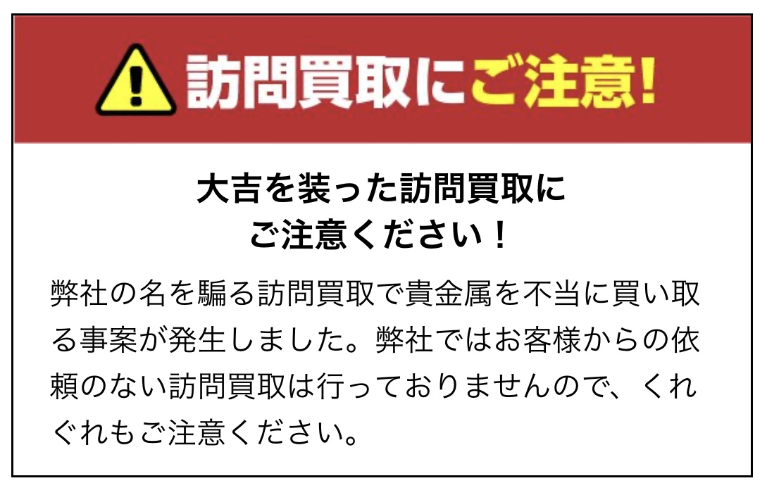 また買取大吉を騙った訪問買取業者にも