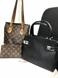 Louis VuittonバケットPM、Ferragamoハンドバッグ