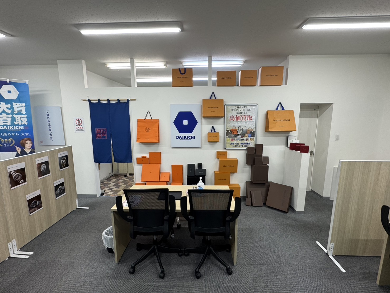 店内に入るとHermès・Chanel・Louis Vuittonの沢山の箱がお出迎えしてくれます・・・!(笑)