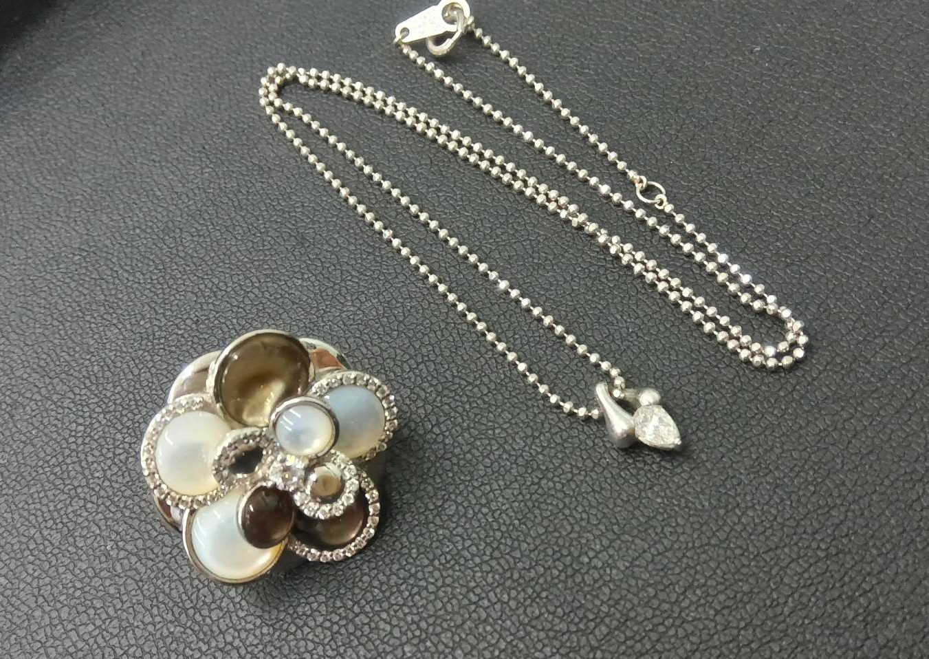 お客様にお聞きしたところブローチが大きくて使いずらく、ネックレスと一緒にお持ち込み頂けたとの事でした。