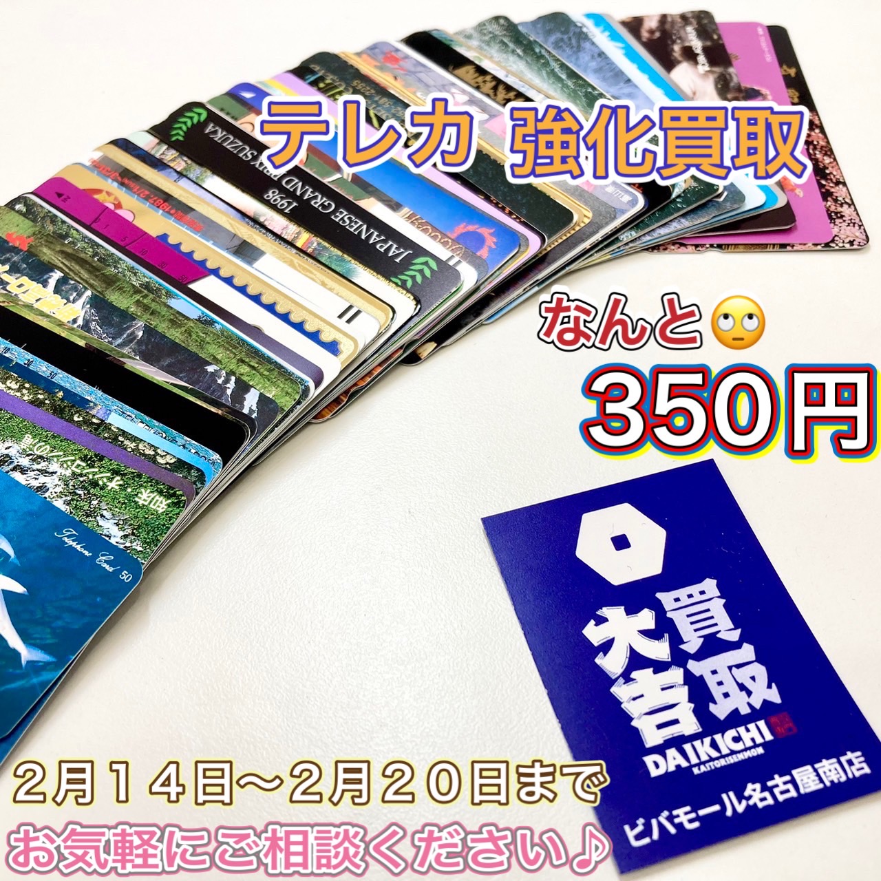 当店では、本日から2月14日~2月20日までテレカ最大350円の買取強化しております🌟🌟