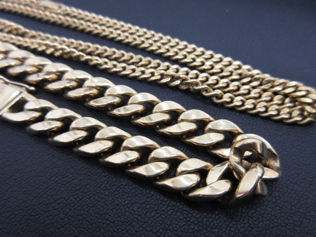 写真のアクセサリーはバブル時に流行した、金の喜平ネックレスとブレスレットです。
