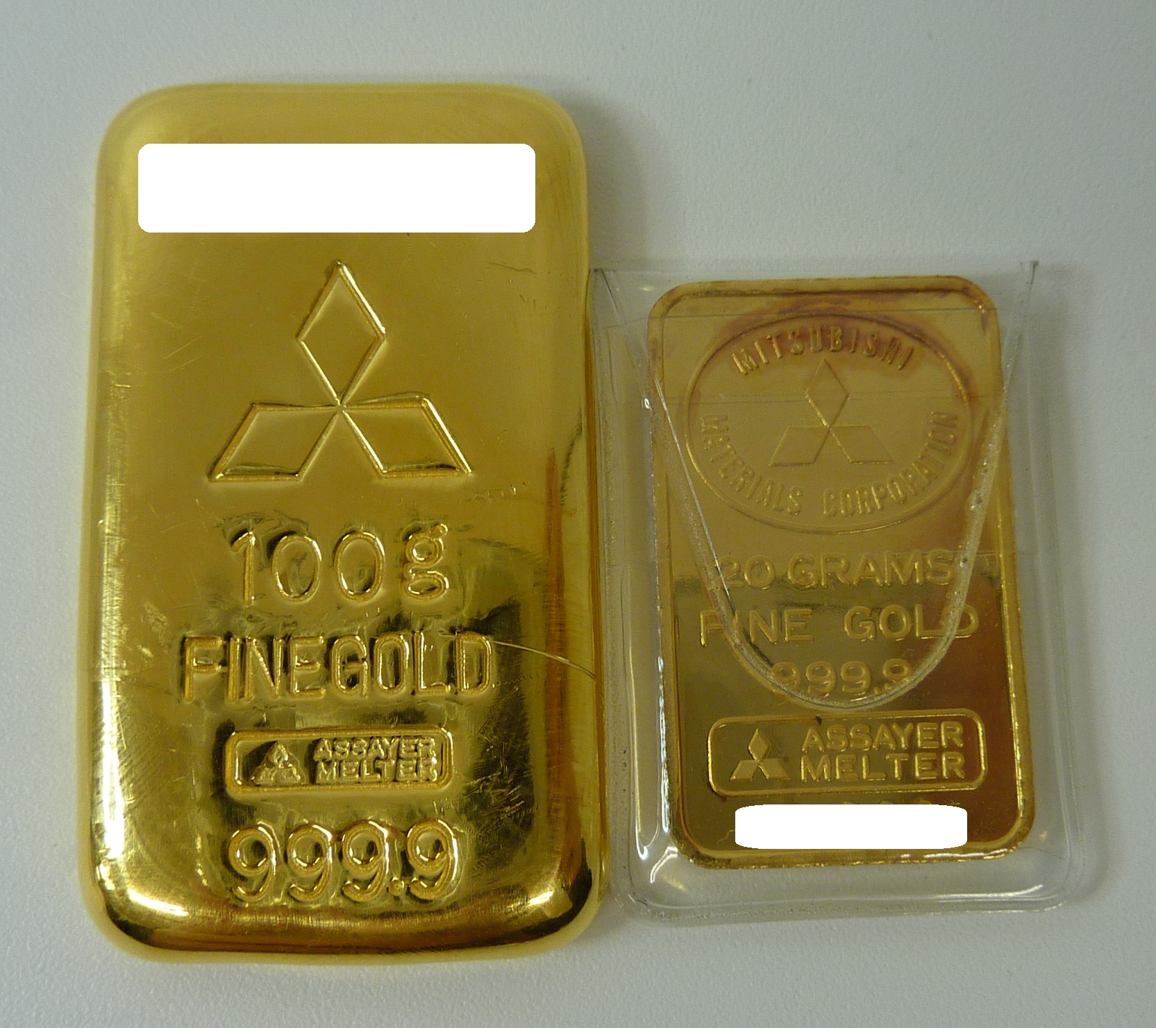 上記のインゴット写真をご覧いただくと、『会社名』がはいっており、K24表記ではなく、『999.9』表記。