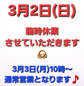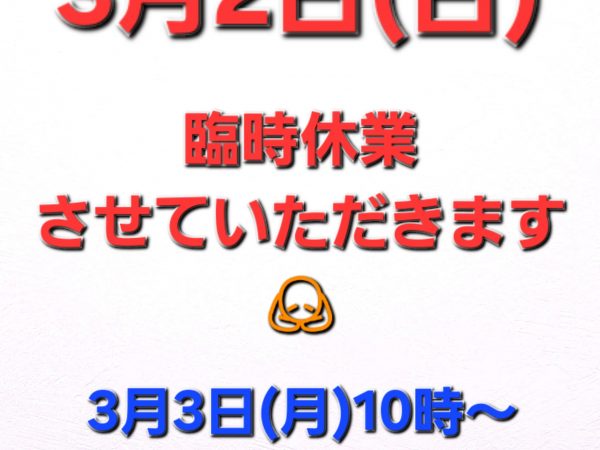 3月2日(日) 臨時休業のお知らせ | 石橋駅前店