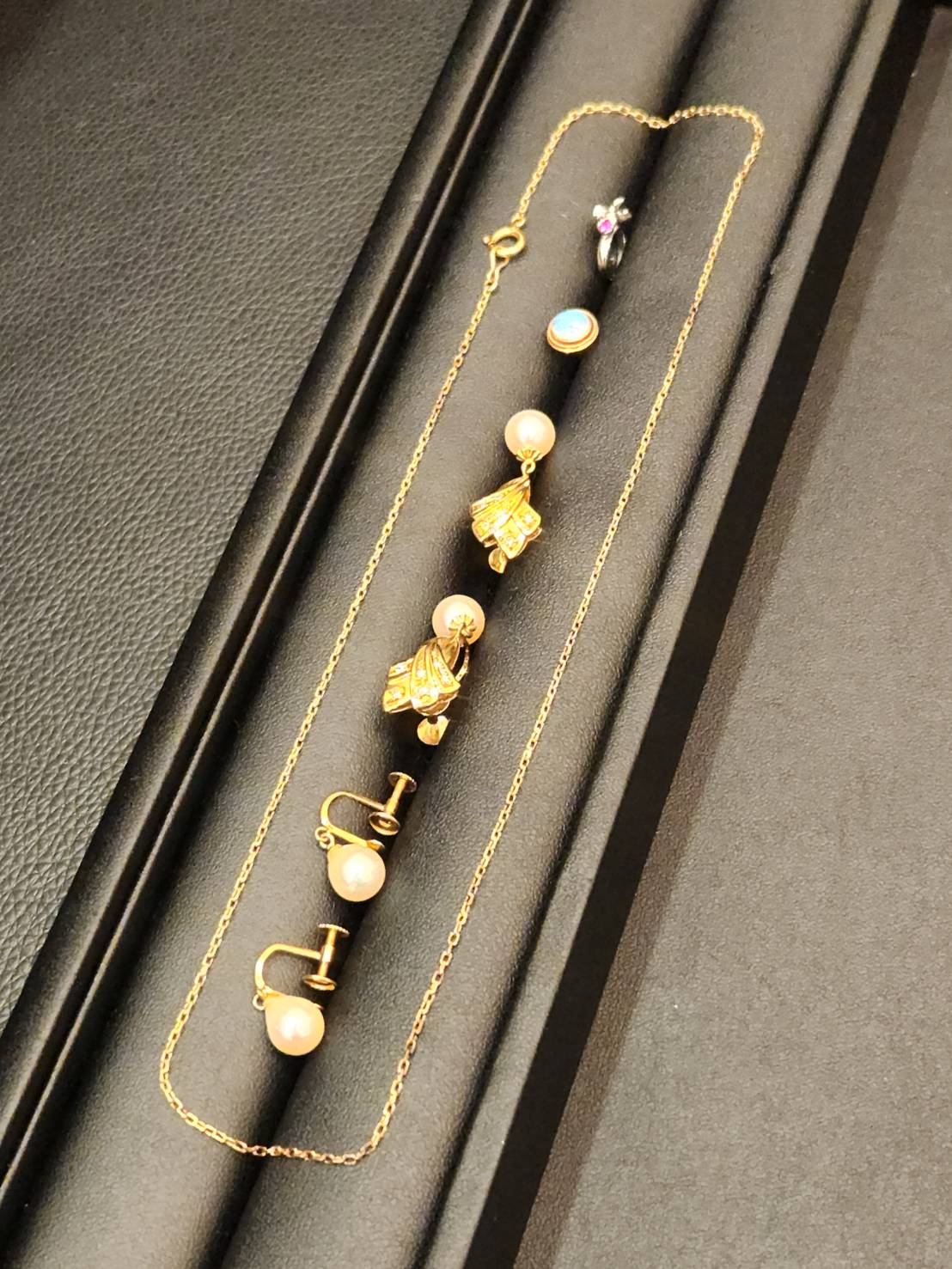金のネックレス、イヤリング、タイタック、プラチナリングをお買取りいたしました。