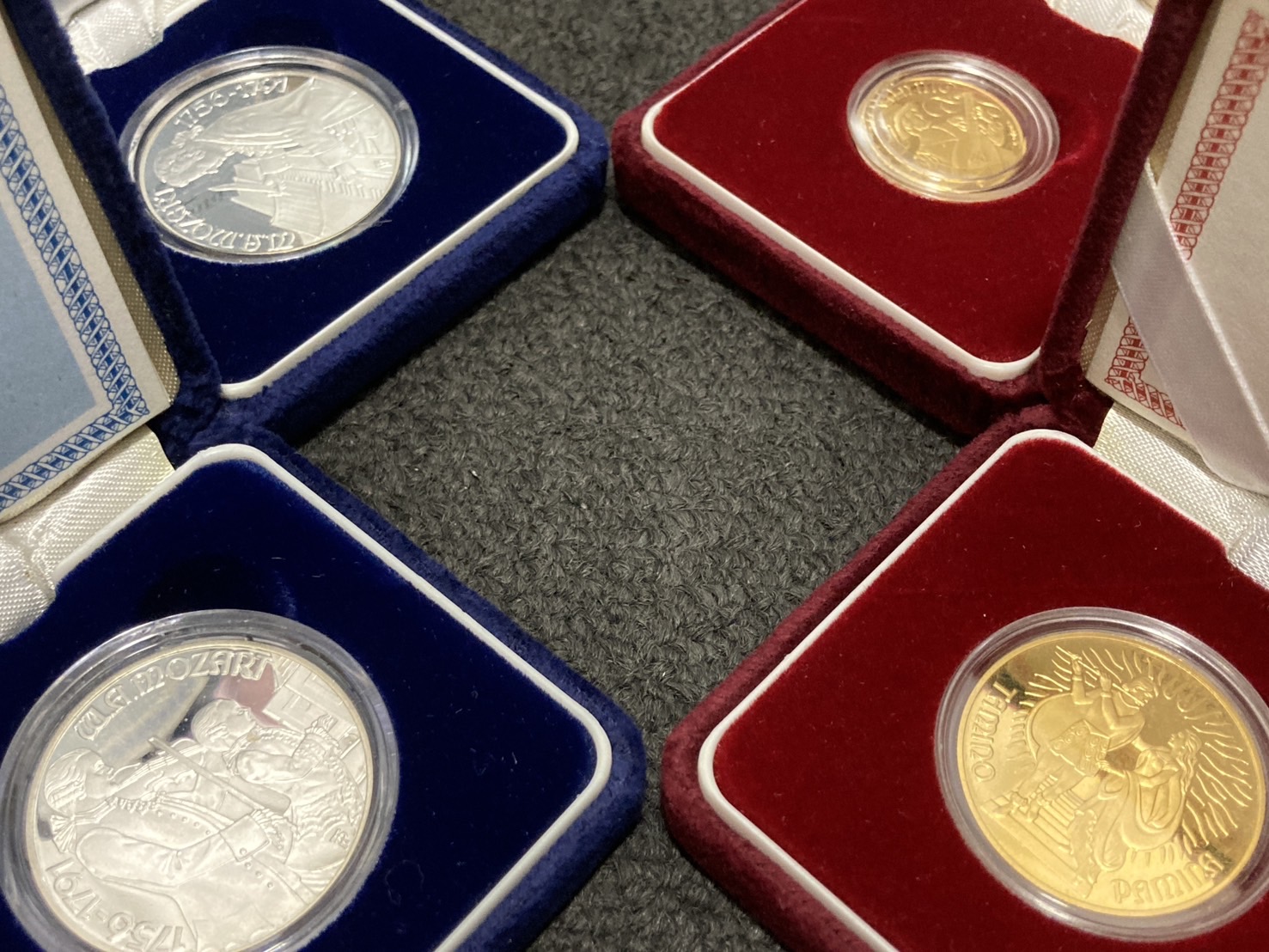 モーツァルト没後200年記念コインになります。4枚セットでケースにも入っていたので保管状態も良く高額買取となりました。外国コインも買取大吉ショッパーズプラザ海老名店はお取り扱いしております。買取専門店ですのでお客様に外国コインをお売りしているわけではなく、お客様がお持ちになられた外国コインを買取させていただきます。記念に買っていた外国コイン、集めていた外国コイン、お父さん、お母さん、おじいちゃん、おばあちゃんからもらった外国コインなど、必要ないのでしたら海老名駅から歩いてすぐ、ダイエーさん2階の買取大吉ショッパーズプラザ海老名店にお持ちください。