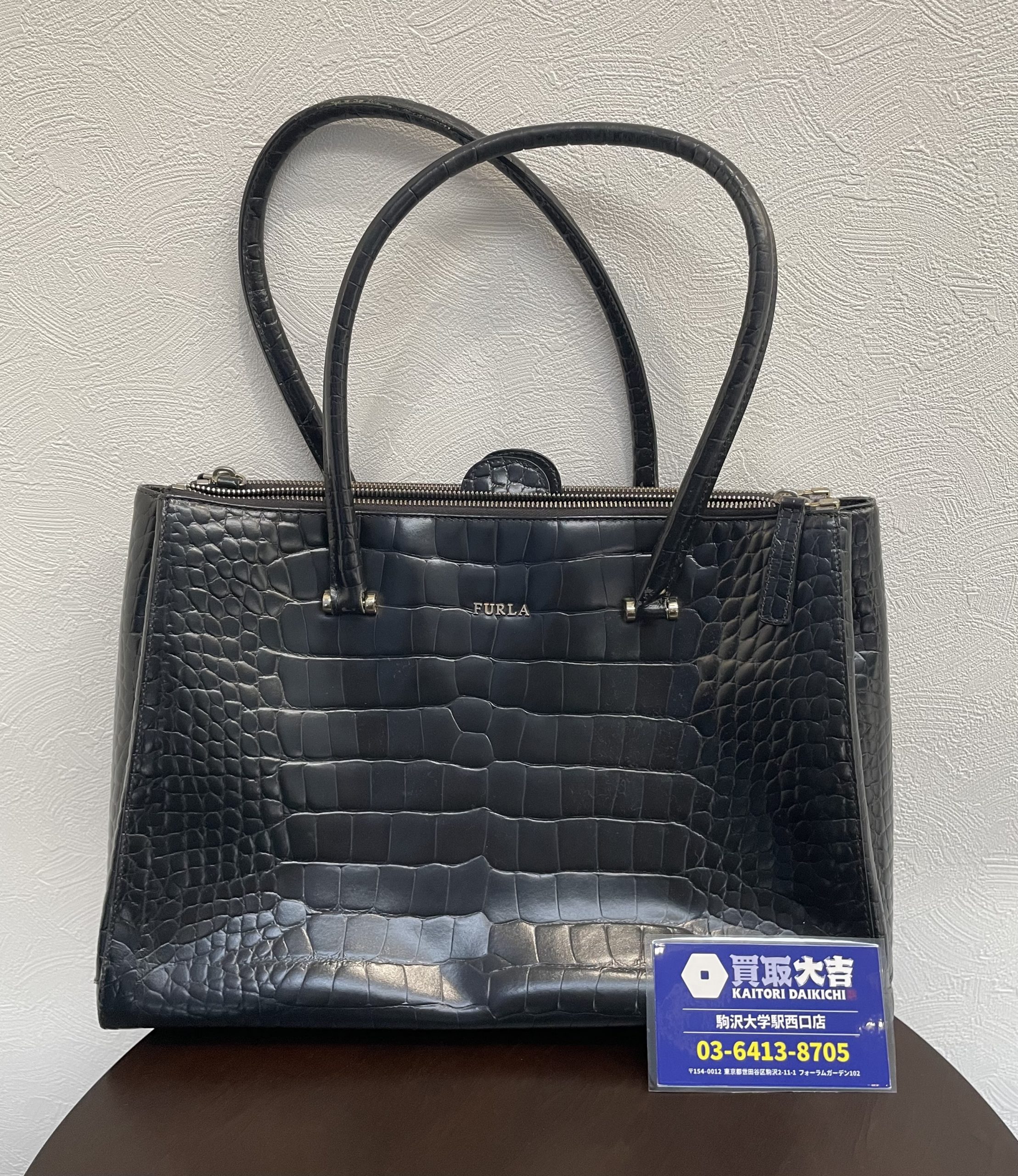 FURLA フルラ ロータス クロコ型押し シャイニー 黒 バック | 駒沢大学駅西口店