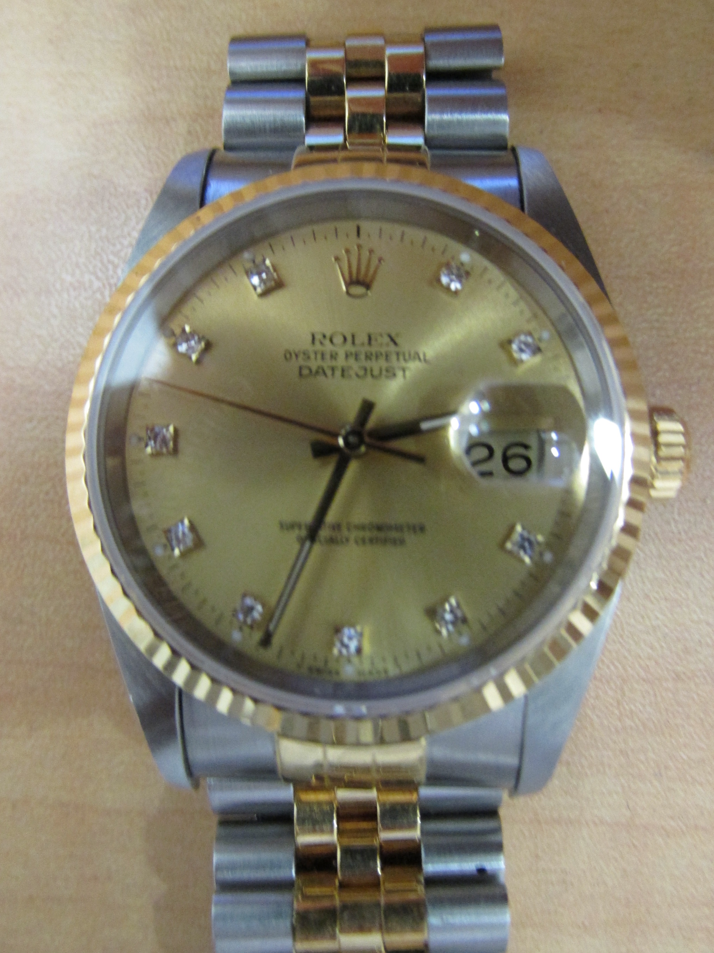 こちらはロレックスのデイトジャストの10ポイントダイヤです。