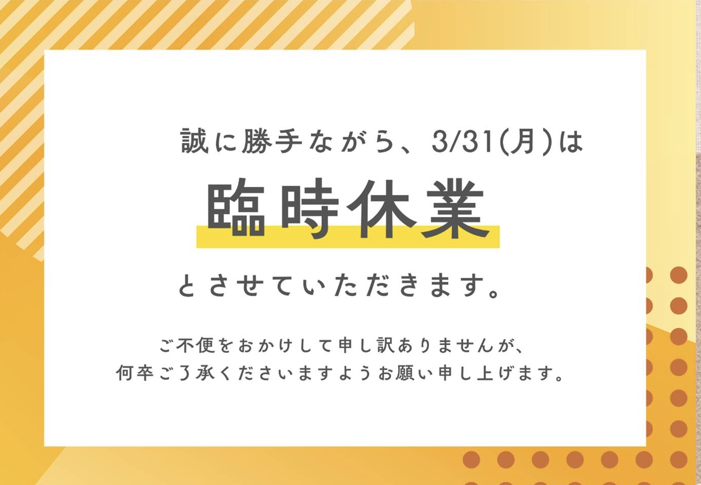 臨時休業のお知らせ | 相模原店