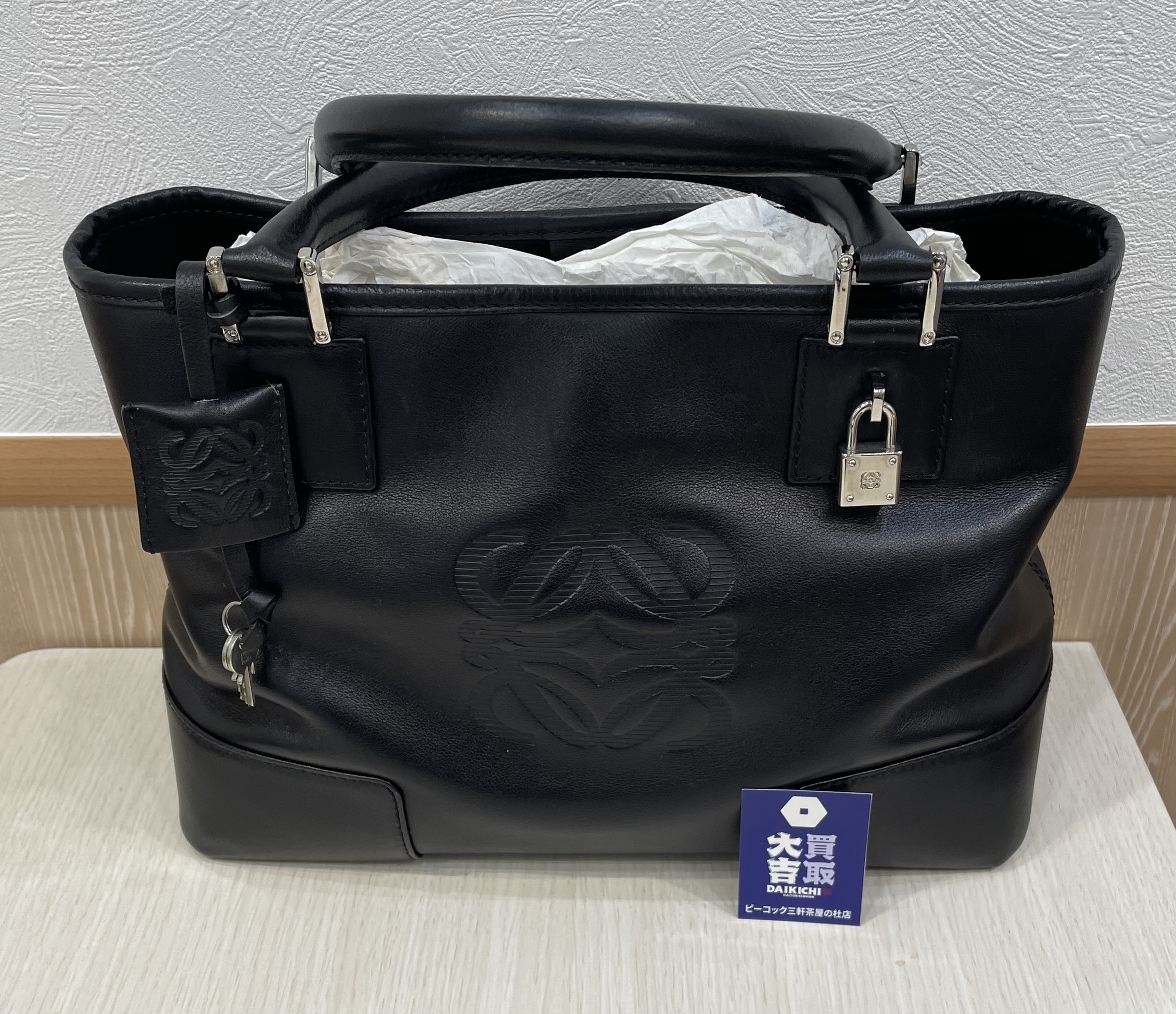 LOEWE ロエベ アマソナ アナグラム トートバッグ ハンドバッグ レザー ブラック | ピーコック三軒茶屋の杜店