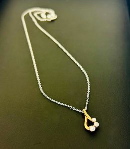 ペンダントトップがK18でできており、3つのダイヤモンドを引き立たせます。