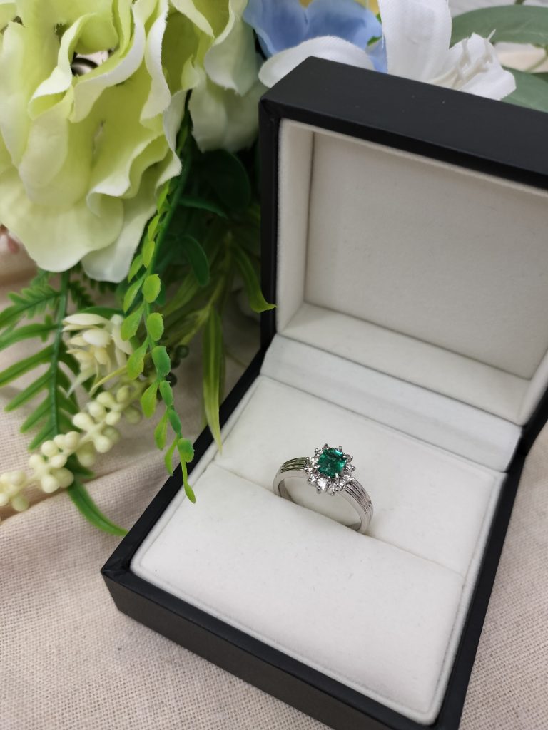 Pt850 リング エメラルド0.43ct D0.24ct ~買取品紹介~ | オギノイーストモール店