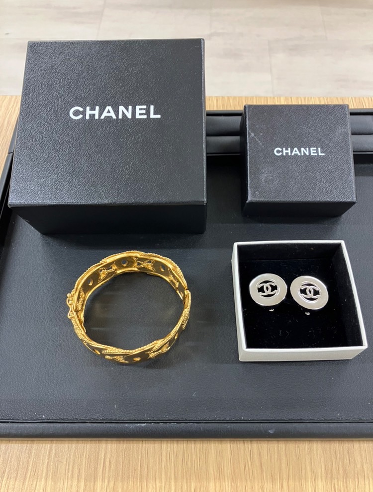 先日こちらのシャネルのバングルとイヤリングをお買取りさせていただきました✨ 何年も前に海外へ旅行に行かれた際に購入されたそうです✈️ 何年経ってもシャネルの輝きが衰えていませんね✨✨