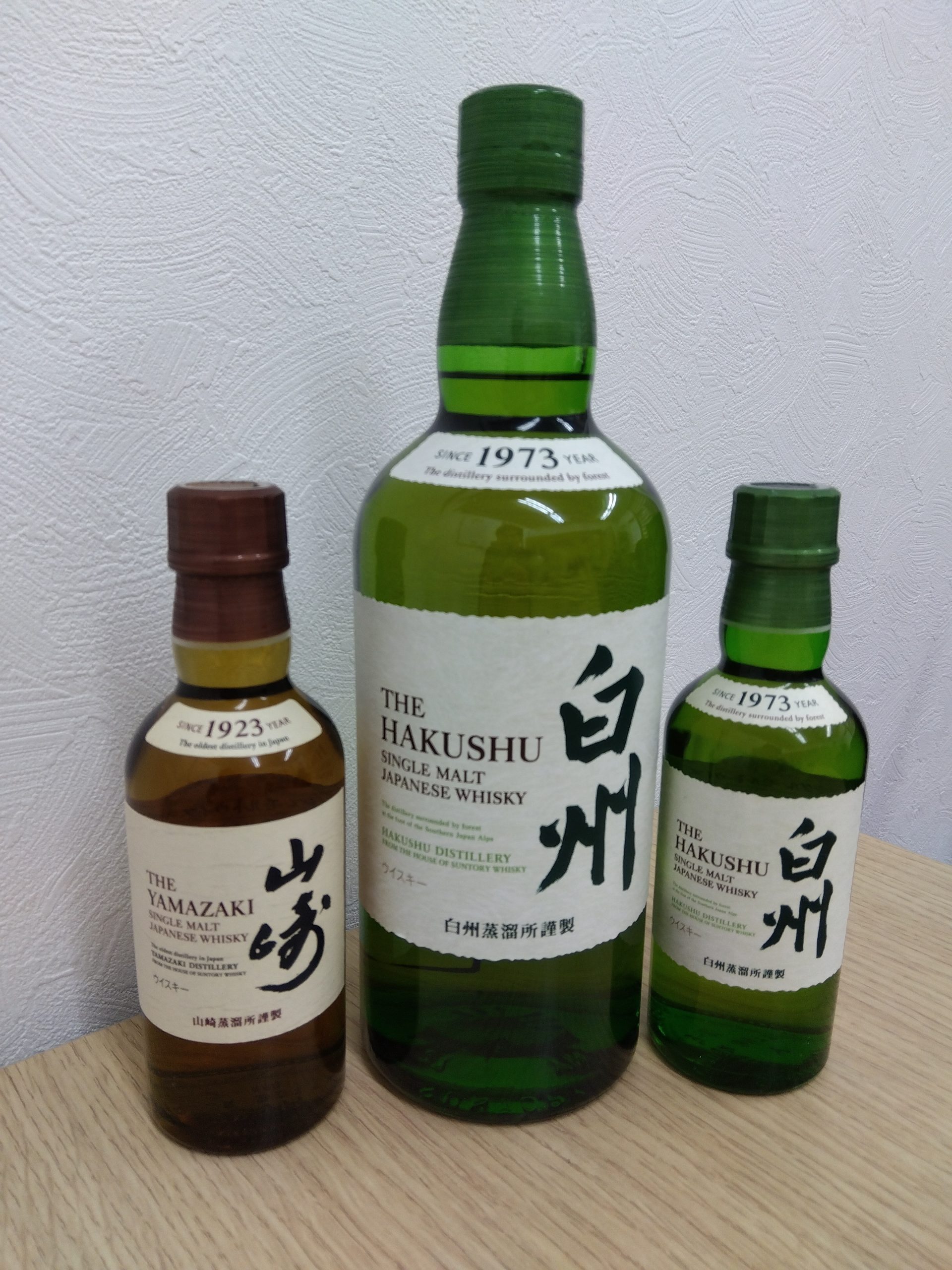 こちら白州700㎖、白州180㎖、山崎180㎖でございます。