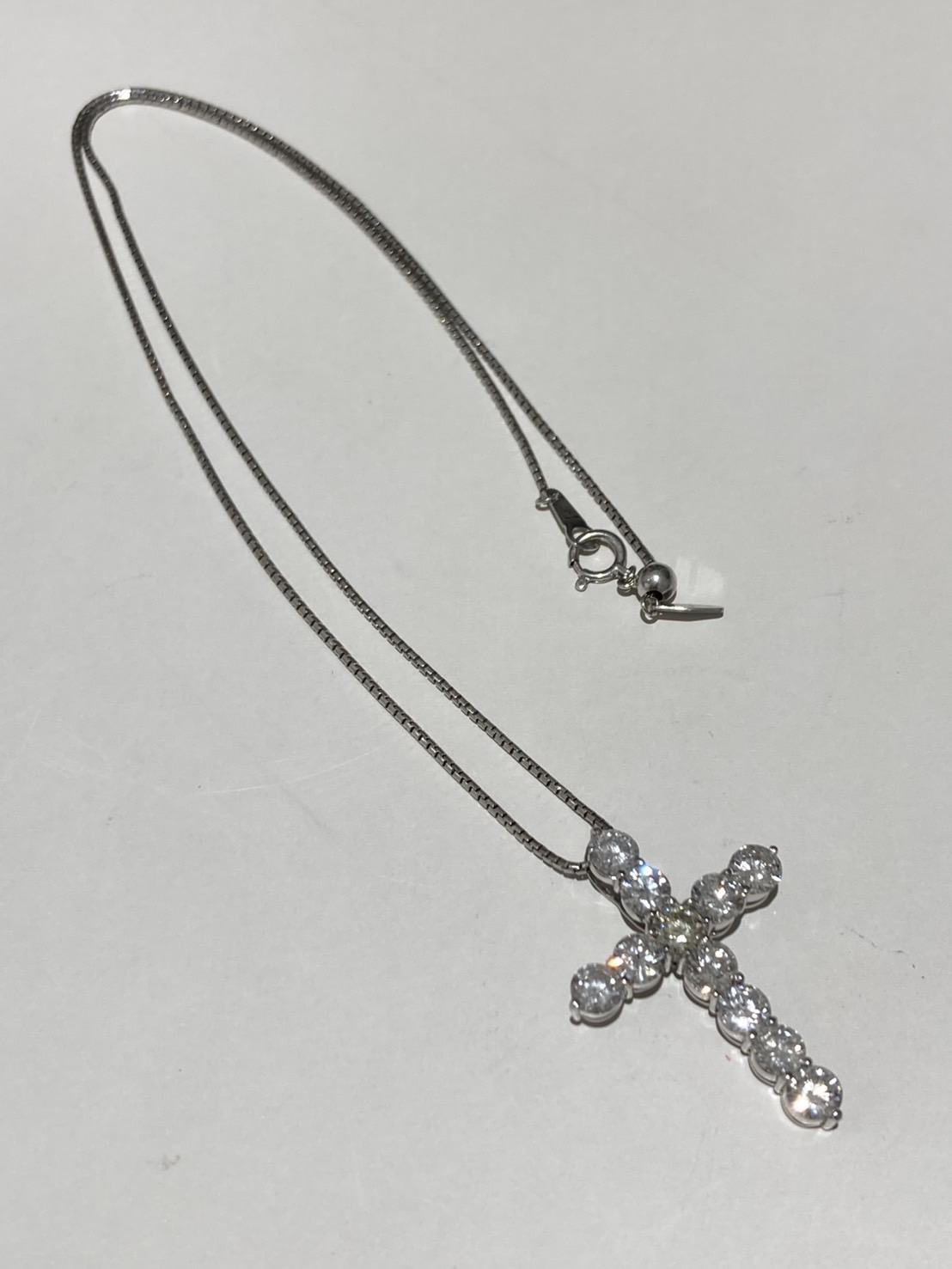 地金は18金ホワイトゴールド、トップに11石で3.78キャラットのダイヤモンドが眩しい豪華なネックレスです('ω')ノ