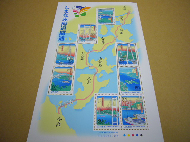 しまなみ海道が開通したのを記念して発行された切手です。
