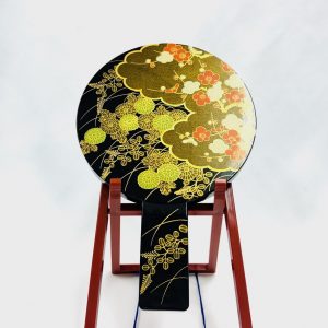 この手鏡も、黒漆塗りに金色の模様が施されており、