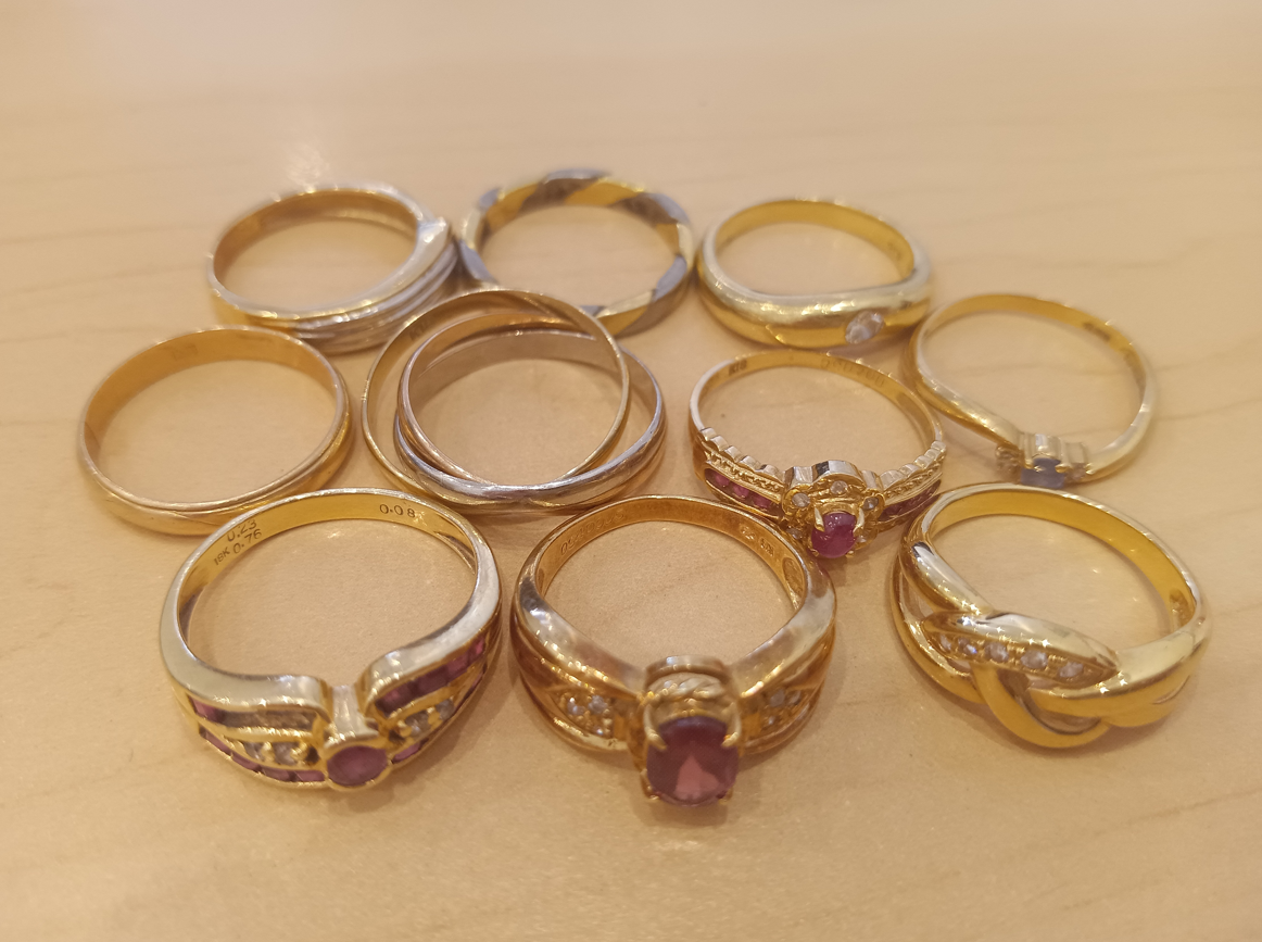 古い指輪や金種不明のジュエリーなど