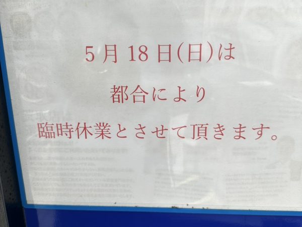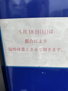 臨時休業のお知らせ 5月18日(日) 終日となります。 | 上石神井駅前店