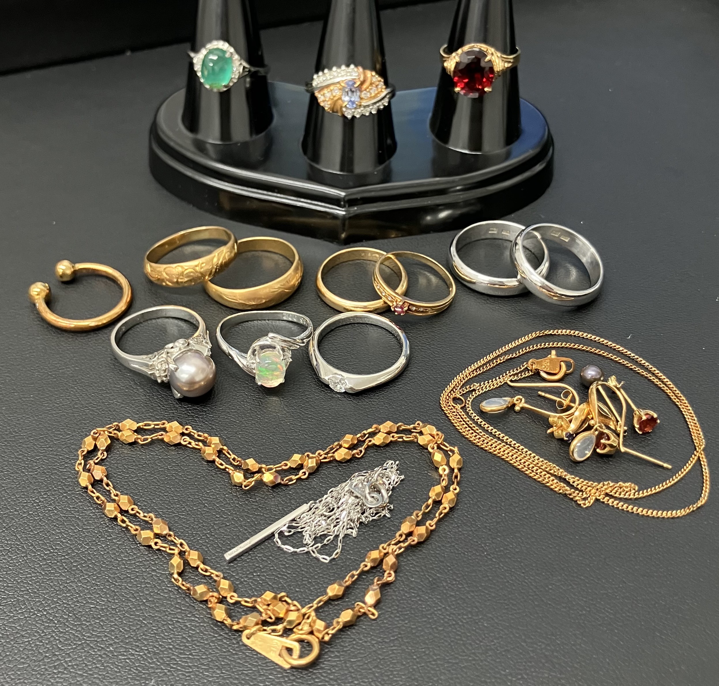 たくさんのリング、ネックレス、ピアスを