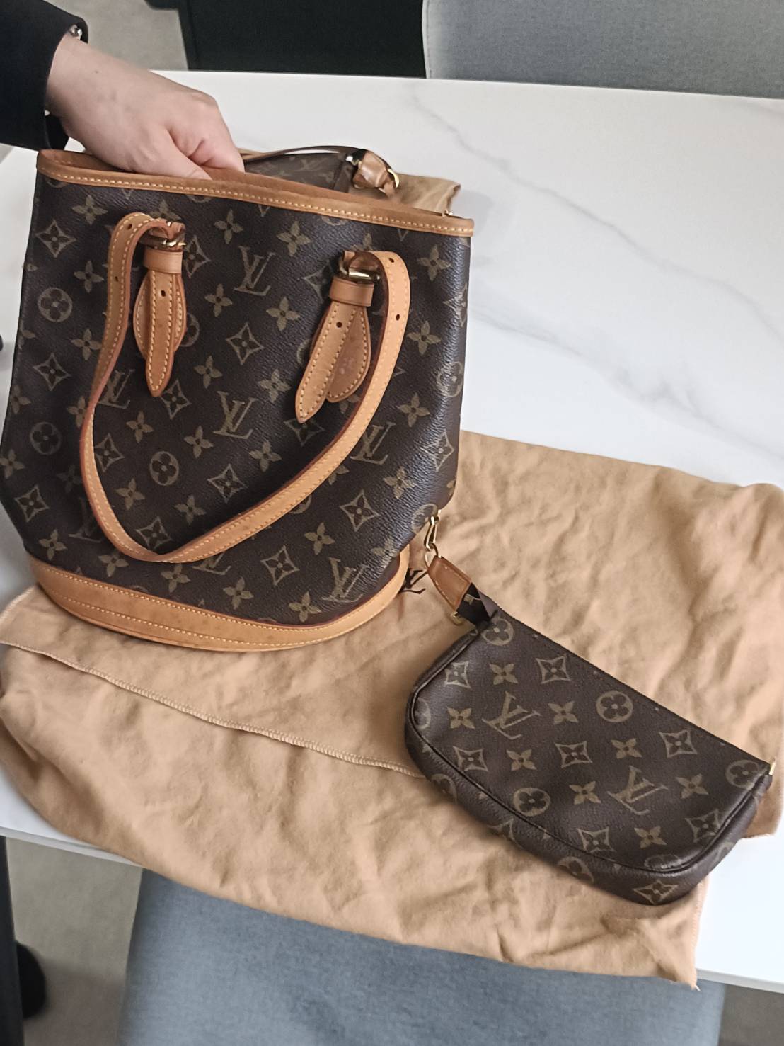 ご来店ありがとうございます😊 LVバッグ(ポーチ付)など数点 お客様納得の高価買取させていただきました♪ 今回はこちらのポーチがとても綺麗な状態でセットのままお持ち頂けた為 高価買取に繋がりました!!! オープン5日目も張り切って営業しております。 買取強化を実施しておりますので、この機会にぜひお気軽にお越しください。 ご来店お待ちしております。