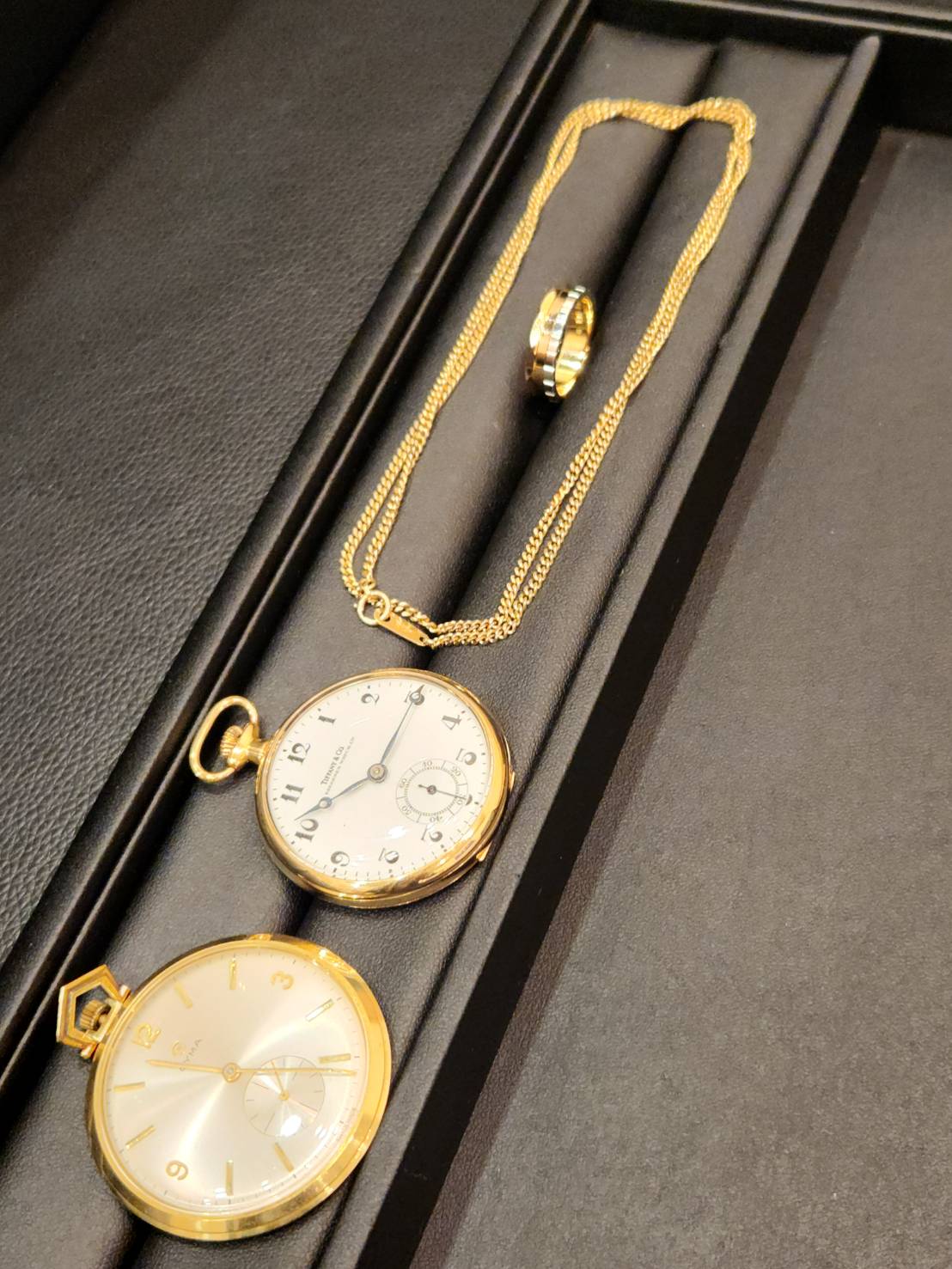 金のネックレス、プラチナのコンビリング、金時計をお買い取りいたしました。