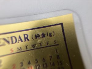 金1gを使用したカレンダーのカードサイズ。