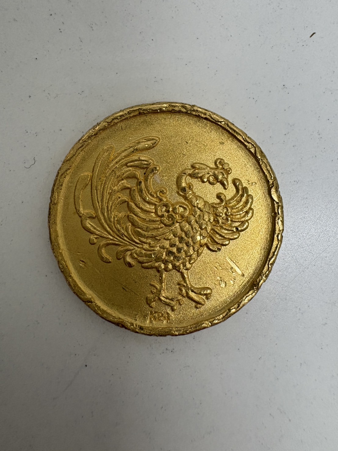 今回は、鳳凰が彫られた金製の金貨をお買取させていただきました。