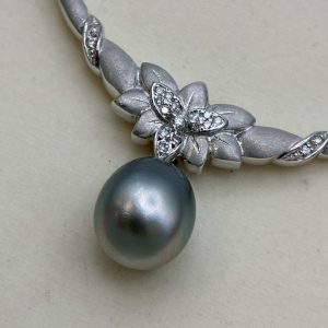 本日はK18ダイヤ黒蝶真珠ネックレスのご紹介です。