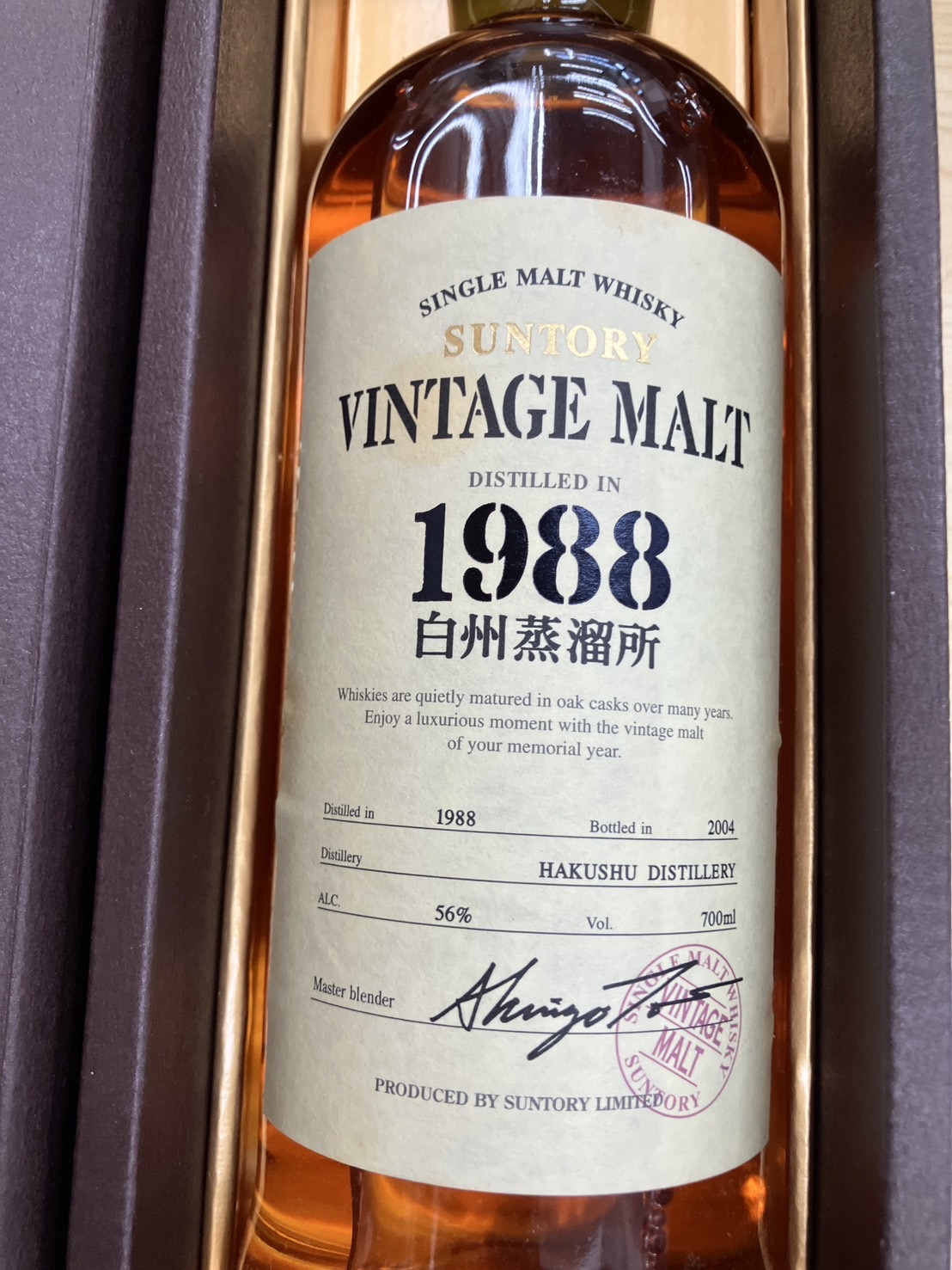 サントリーウイスキー『白州』ヴィンテージモルト1988-2004をお買取りさせて頂きました。