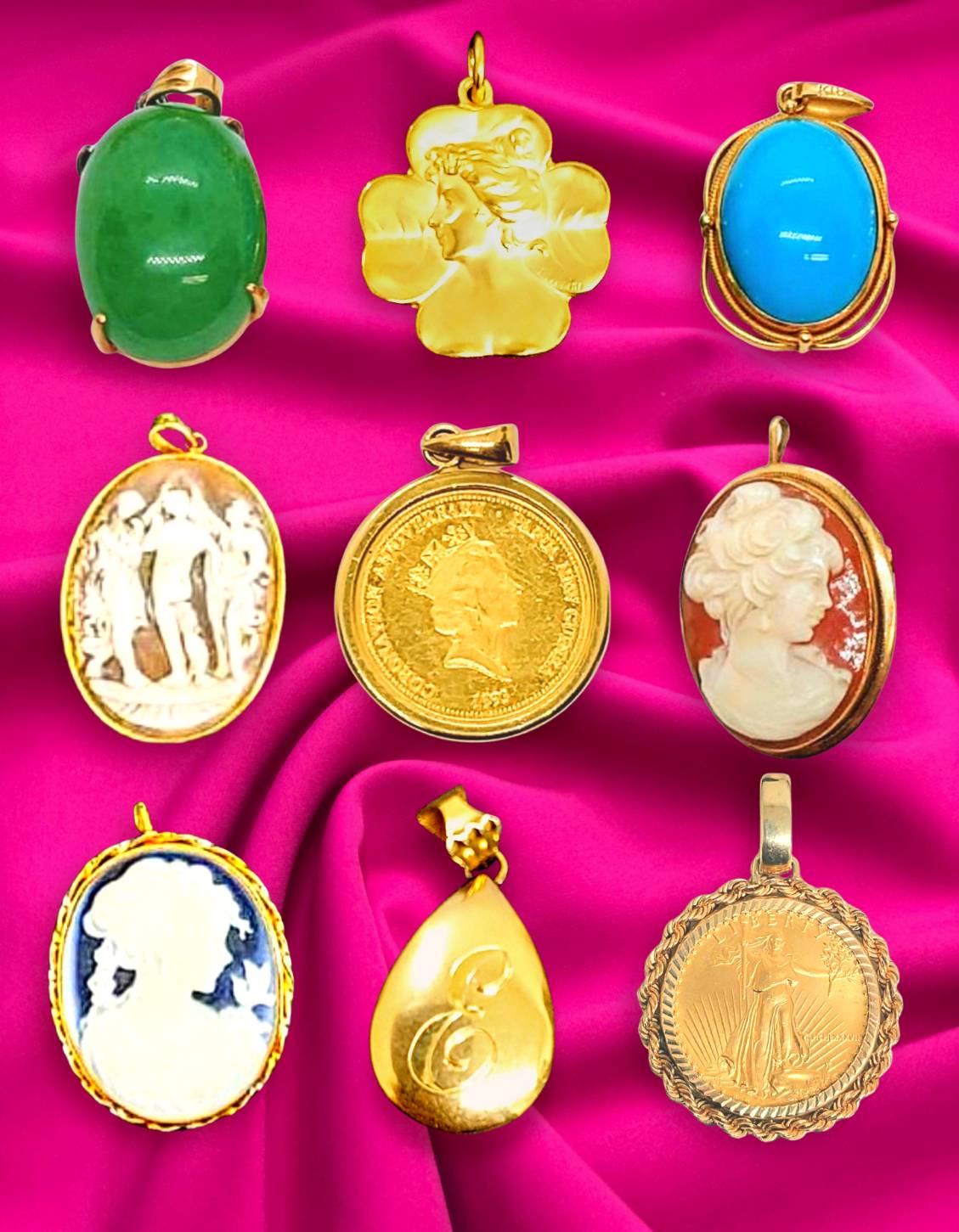 カラーストーンや金貨、カメオが彩る