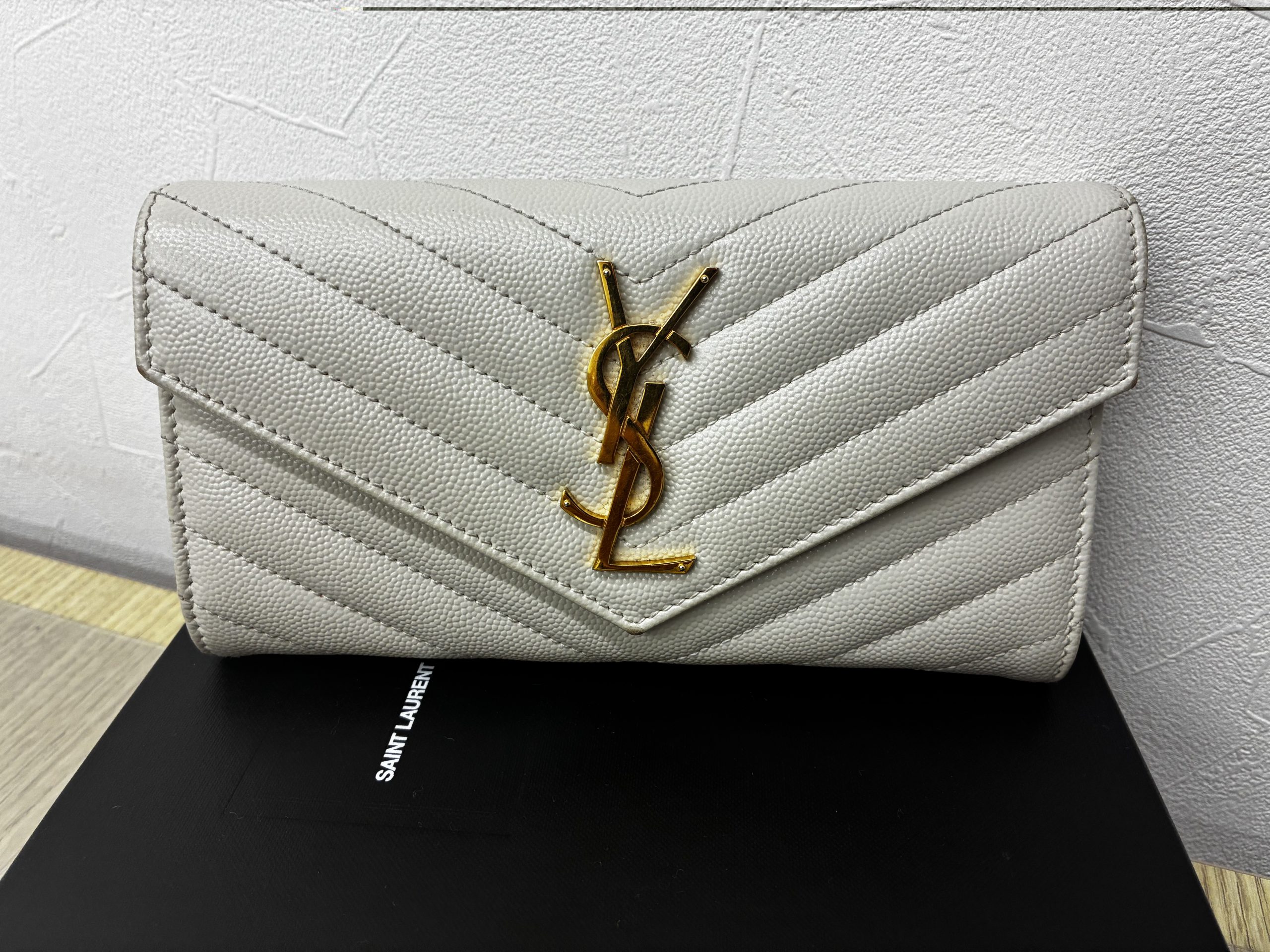 サンローラン 長財布 ホワイト レザー 箱有り