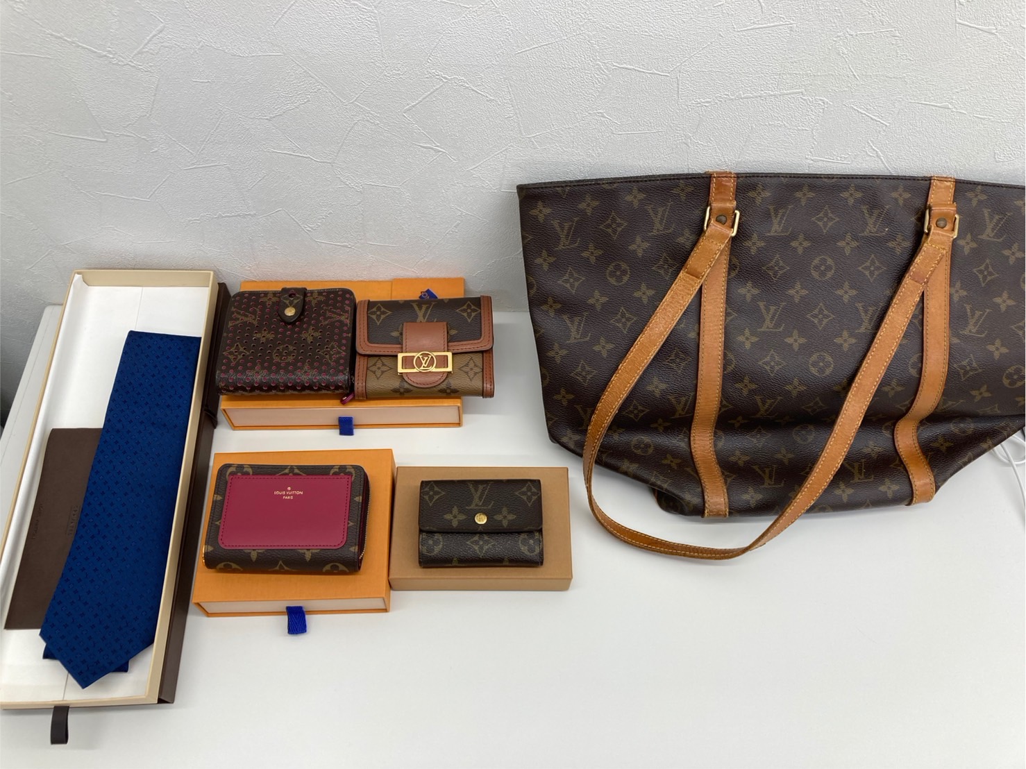 先日はこちらの ルイヴィトンの財布、バック、ネクタイを高価買取させていただきました