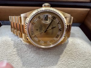 昨日はリピーター様から素敵なお品物‼Rolexデイデイト18238MRをお買取りさせていただきました、Rolexと言えばスポーツモデルが大変人気ですが、デイデイトは成功者の時計とも言われているRolexのモデルの中でも最高級ラインの時計です、素材は全てYGかWGかPT‼ブレスはプレジデントブレス、名前の由来はその昔アメリカのプレジデントに贈られた事が由来だそうです、文字盤もメテオライト(隕石)やラピスラズリ、オニキスなど様々な文字盤がありロマンあふれる素敵な時計です、そんな素敵なお品物を数ある買取店の中から選んでくださいまして、ご売却ご決断いただきま誠にありがとうございました。