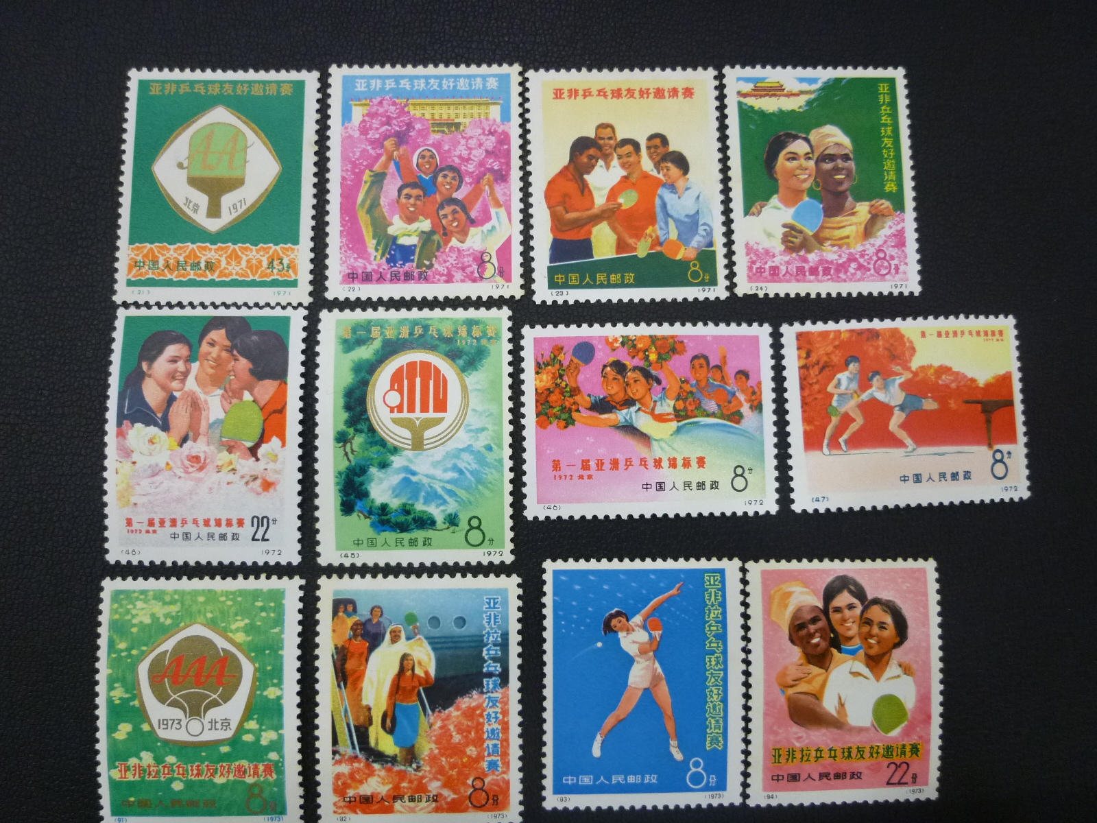 中国切手1972年 革11 第一回アジア卓球選手権大会 4種完